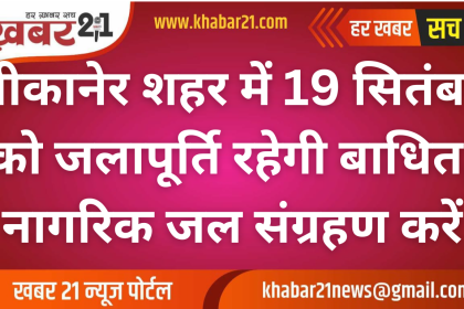 बीकानेर में पेयजल आपूर्ति 19 सितंबर को रहेगी बाधित, लीकेज मरम्मत कार्य…