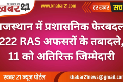 राजस्थान में बड़ा प्रशासनिक बदलाव: 222 RAS अधिकारियों का तबादला, कई को…
