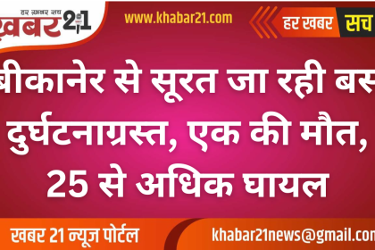 बीकानेर से सूरत जा रही बस दुर्घटनाग्रस्त, एक की मौत, 25 से अधिक घायल
