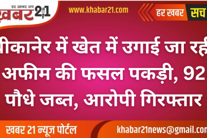 बीकानेर में खेत में उगाई जा रही अफीम की फसल पकड़ी, 92 पौधे जब्त, आरोपी गिरफ्तार