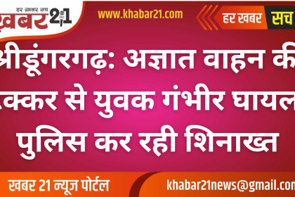 श्रीडूंगरगढ़: अज्ञात वाहन की टक्कर से युवक गंभीर घायल, पुलिस कर रही शिनाख्त