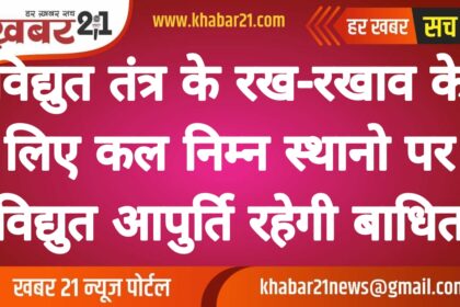 विद्युत तंत्र के रख-रखाव के लिए कल निम्न स्थानो पर विद्युत आपुर्ति रहेगी बाधित