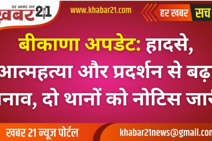 बीकाणा अपडेट: हादसे, आत्महत्या और प्रदर्शन से बढ़ा तनाव, दो थानों को नोटिस जारी