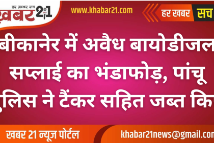 बीकानेर में अवैध बायोडीजल सप्लाई का भंडाफोड़, पांचू पुलिस ने टैंकर सहित जब्त किए