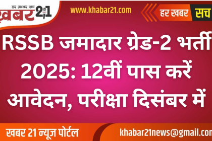 RSSB जमादार ग्रेड-2 भर्ती 2025: 12वीं पास करें आवेदन, परीक्षा दिसंबर में