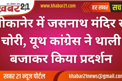 बीकानेर में जसनाथ मंदिर से चोरी, यूथ कांग्रेस ने थाली बजाकर किया प्रदर्शन