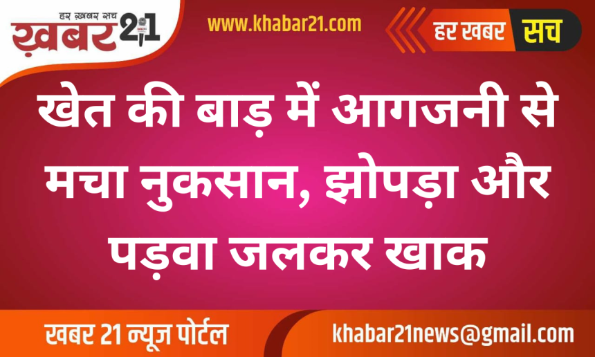 खेत की बाड़ में आगजनी से मचा नुकसान, झोपड़ा और पड़वा जलकर खाक