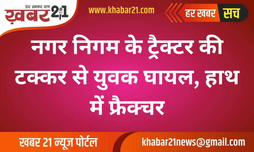 नगर निगम के ट्रैक्टर की टक्कर से युवक घायल, हाथ में फ्रैक्चर
