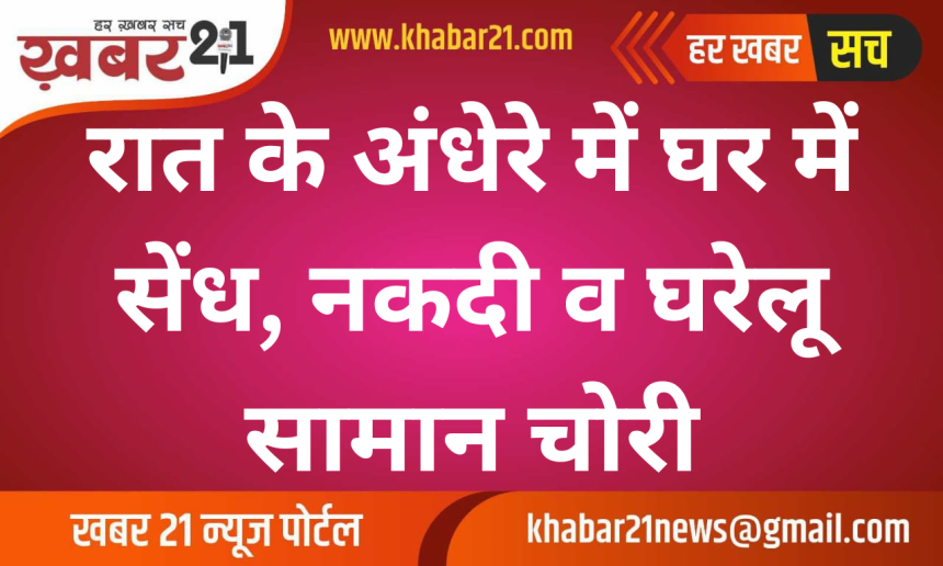 रात के अंधेरे में घर में सेंध, नकदी व घरेलू सामान चोरी