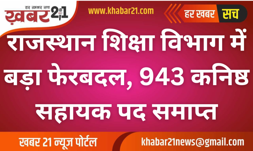 राजस्थान शिक्षा विभाग में बड़ा फेरबदल, 943 कनिष्ठ सहायक पद समाप्त – Rajasthan News