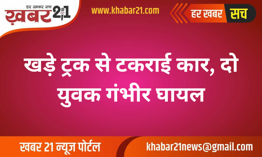 खड़े ट्रक से टकराई कार, दो युवक गंभीर घायल