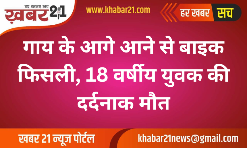 गाय के आगे आने से बाइक फिसली, 18 वर्षीय युवक की दर्दनाक मौत