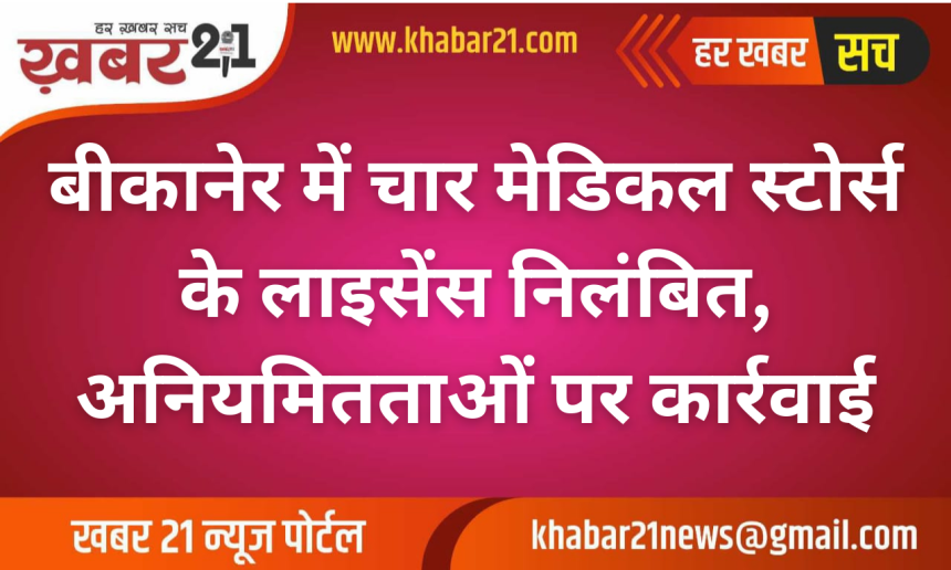 बीकानेर में चार मेडिकल स्टोर्स के लाइसेंस निलंबित, अनियमितताओं पर कार्रवाई