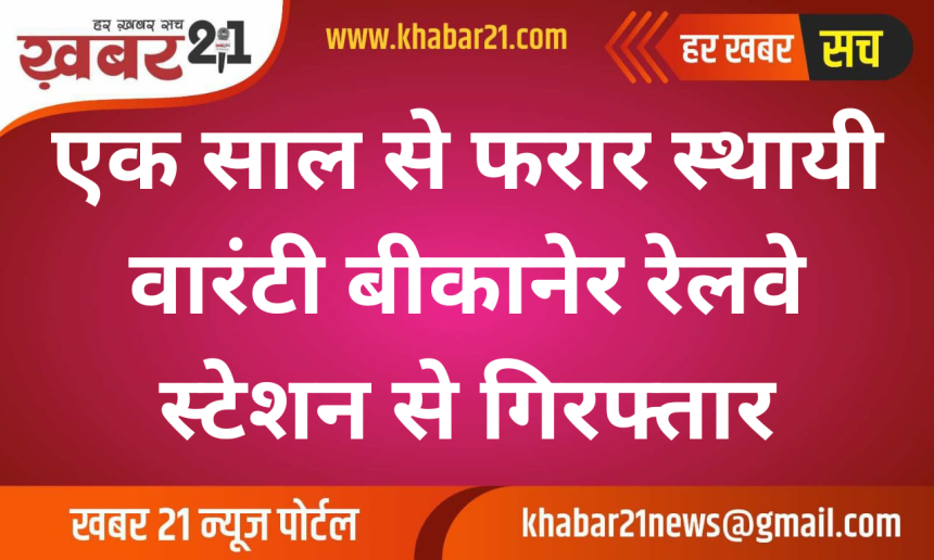 एक साल से फरार स्थायी वारंटी बीकानेर रेलवे स्टेशन से गिरफ्तार