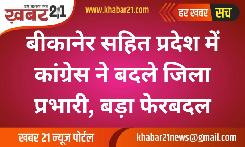 बीकानेर सहित प्रदेश में कांग्रेस ने बदले जिला प्रभारी, बड़ा फेरबदल