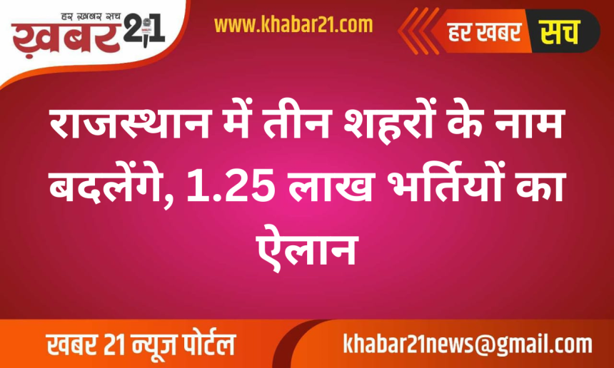 राजस्थान में तीन शहरों के नाम बदलेंगे, 1.25 लाख भर्तियों का ऐलान