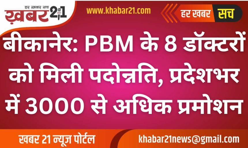 बीकानेर: PBM के 8 डॉक्टरों को मिली पदोन्नति, प्रदेशभर में 3000 से अधिक प्रमोशन