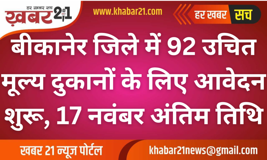 बीकानेर जिले में 92 उचित मूल्य दुकानों के लिए आवेदन शुरू, 17 नवंबर अंतिम तिथि
