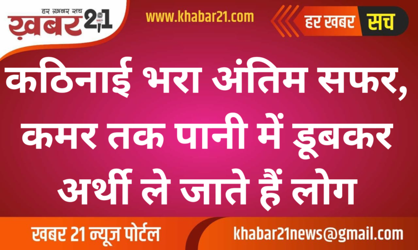 कठिनाई भरा अंतिम सफर, कमर तक पानी में डूबकर अर्थी ले जाते हैं लोग