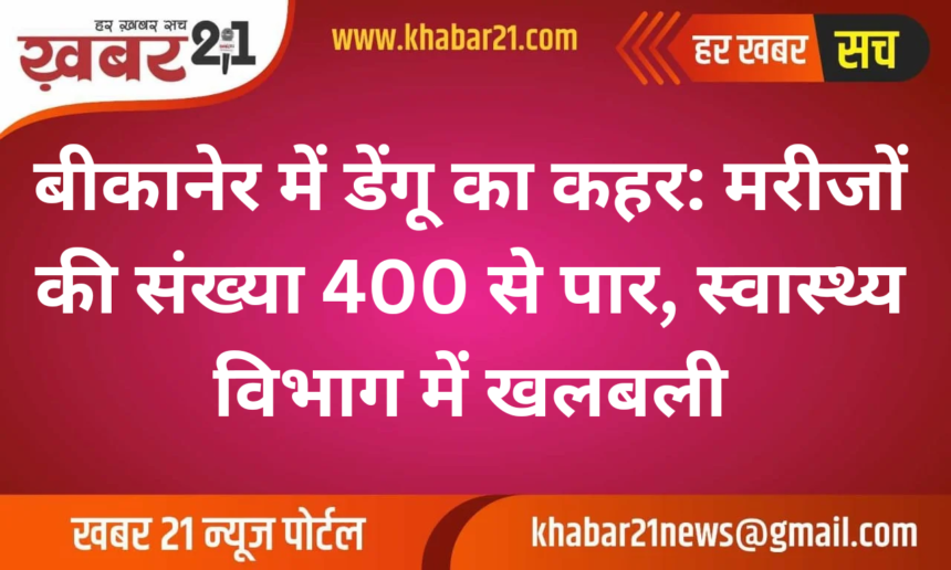 बीकानेर में डेंगू का कहर: मरीजों की संख्या 400 से पार, स्वास्थ्य विभाग में खलबली