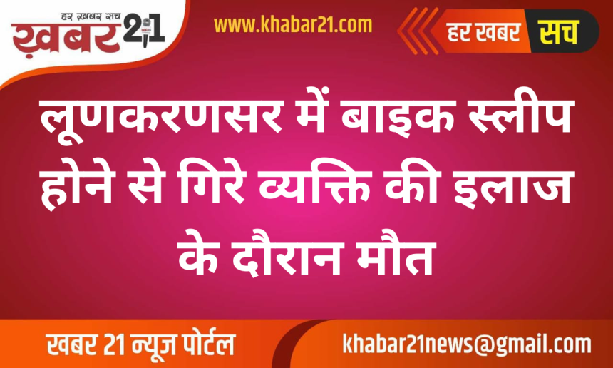लूणकरणसर में बाइक स्लीप होने से गिरे व्यक्ति की इलाज के दौरान मौत