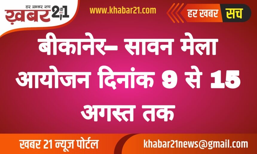 बीकानेर– सावन मेला आयोजन दिनांक 9 से 15 अगस्त तक