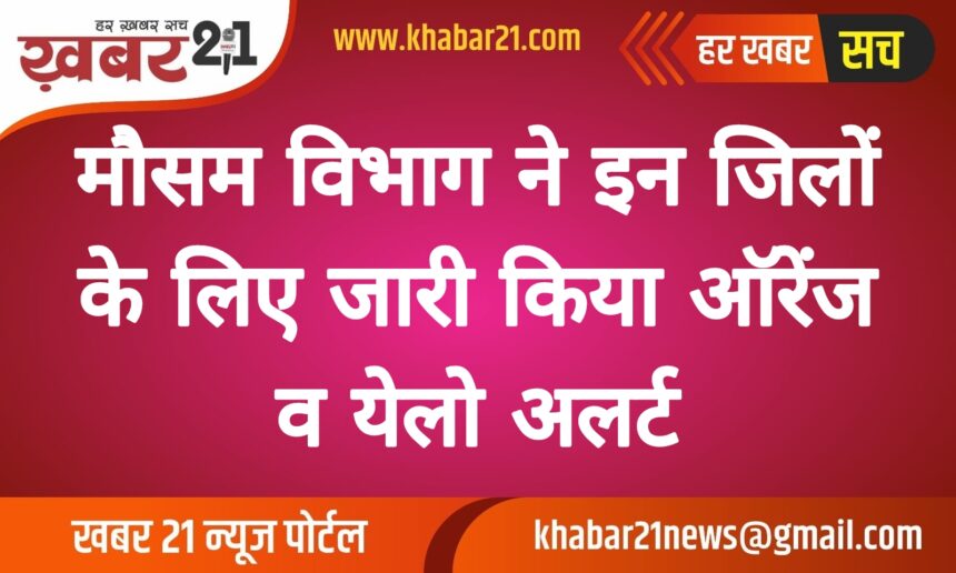 मौसम विभाग ने इन जिलों के लिए जारी किया ऑरेंज व येलो अलर्ट