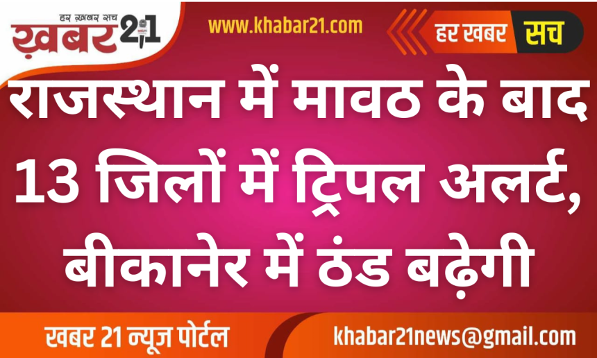 राजस्थान में मावठ के बाद 13 जिलों में ट्रिपल अलर्ट, बीकानेर में ठंड बढ़ेगी