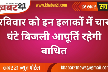 रविवार को इन इलाकों में चार घंटे बिजली आपूर्ति रहेगी बाधित