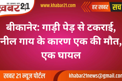 बीकानेर: गाड़ी पेड़ से टकराई, नील गाय के कारण एक की मौत, एक घायल