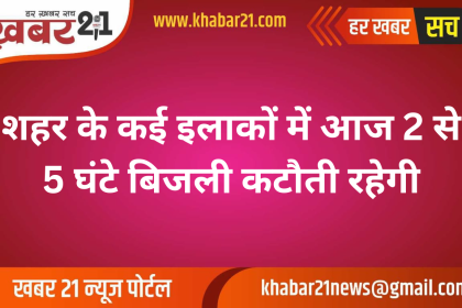 शहर के कई इलाकों में आज 2 से 5 घंटे बिजली कटौती रहेगी