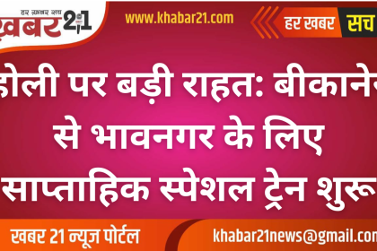 होली पर बड़ी राहत: बीकानेर से भावनगर के लिए साप्ताहिक स्पेशल ट्रेन शुरू