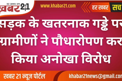 सड़क के खतरनाक गड्ढे पर ग्रामीणों ने पौधारोपण कर किया अनोखा विरोध