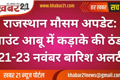 राजस्थान मौसम अपडेट: माउंट आबू में कड़ाके की ठंड, 21-23 नवंबर बारिश अलर्ट