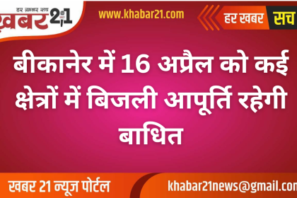 बीकानेर में 16 अप्रैल को कई क्षेत्रों में बिजली आपूर्ति रहेगी बाधित