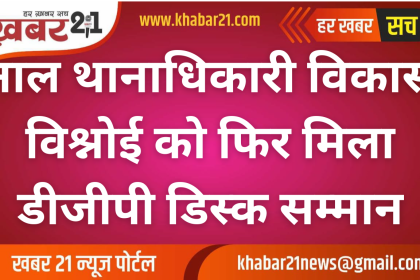 नाल थानाधिकारी विकास विश्नोई को फिर मिला डीजीपी डिस्क सम्मान