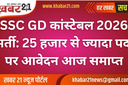 SSC GD कांस्टेबल 2026 भर्ती: 25 हजार से ज्यादा पदों पर आवेदन आज समाप्त