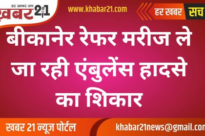 बीकानेर रेफर मरीज ले जा रही एंबुलेंस हादसे का शिकार