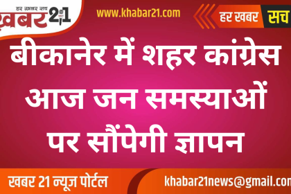 बीकानेर में शहर कांग्रेस आज जन समस्याओं पर सौंपेगी ज्ञापन