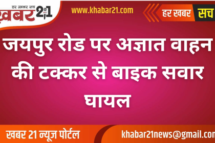 जयपुर रोड पर अज्ञात वाहन की टक्कर से बाइक सवार घायल
