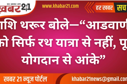 शशि थरूर बोले—“आडवाणी को सिर्फ रथ यात्रा से नहीं, पूरे योगदान से आंके”