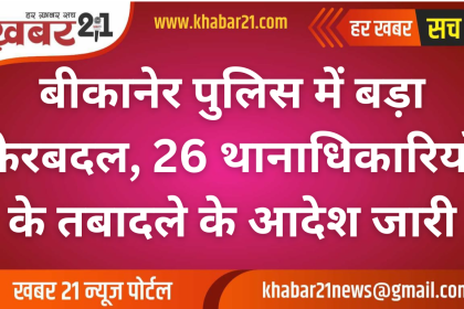 बीकानेर पुलिस में बड़ा फेरबदल, 26 थानाधिकारियों के तबादले के आदेश जारी