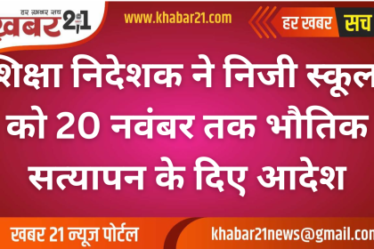 शिक्षा निदेशक ने निजी स्कूलों को 20 नवंबर तक भौतिक सत्यापन के दिए आदेश