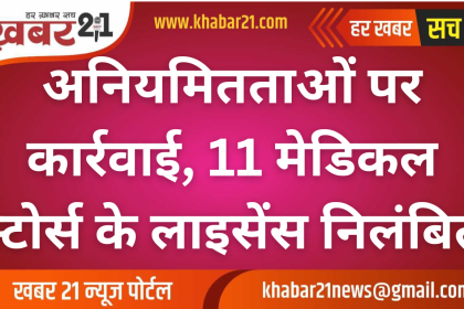 अनियमितताओं पर कार्रवाई, 11 मेडिकल स्टोर्स के लाइसेंस निलंबित