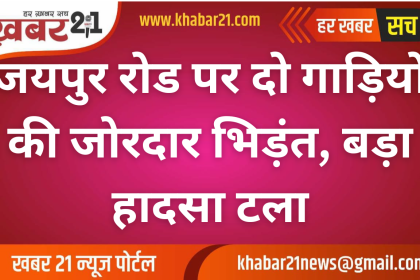 जयपुर रोड पर दो गाड़ियों की जोरदार भिड़ंत, बड़ा हादसा टला