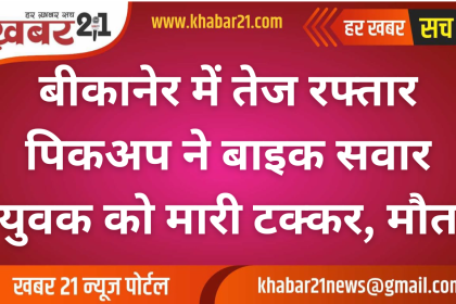 बीकानेर में तेज रफ्तार पिकअप ने बाइक सवार युवक को मारी टक्कर, मौत