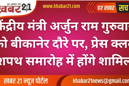 केंद्रीय मंत्री अर्जुन राम गुरुवार को बीकानेर दौरे पर, प्रेस क्लब शपथ समारोह में होंगे शामिल