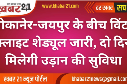 बीकानेर-जयपुर के बीच विंटर फ्लाइट शेड्यूल जारी, दो दिन मिलेगी उड़ान की सुविधा