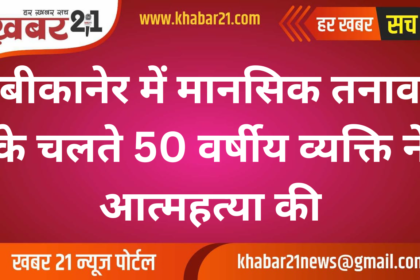 बीकानेर में मानसिक तनाव के चलते 50 वर्षीय व्यक्ति ने आत्महत्या की