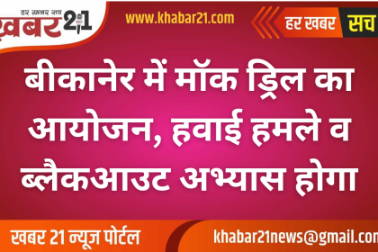 बीकानेर में मॉक ड्रिल का आयोजन, हवाई हमले व ब्लैकआउट अभ्यास होगा